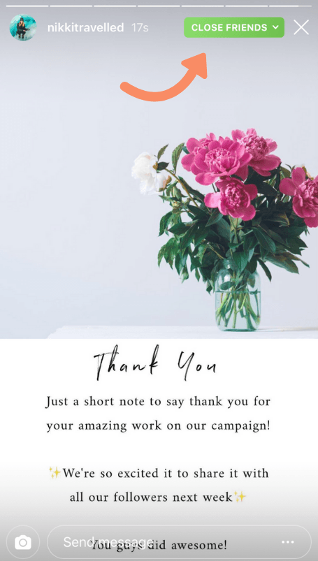 For example, if you're a brand that works closely with collaborators or influencers for Instagram campaigns, you may want to create a Close Friends lists for them. With all your collaborators in i listing, you can easily share posts that would interest them from your Instagram business relationship, while hiding the post from all other followers.